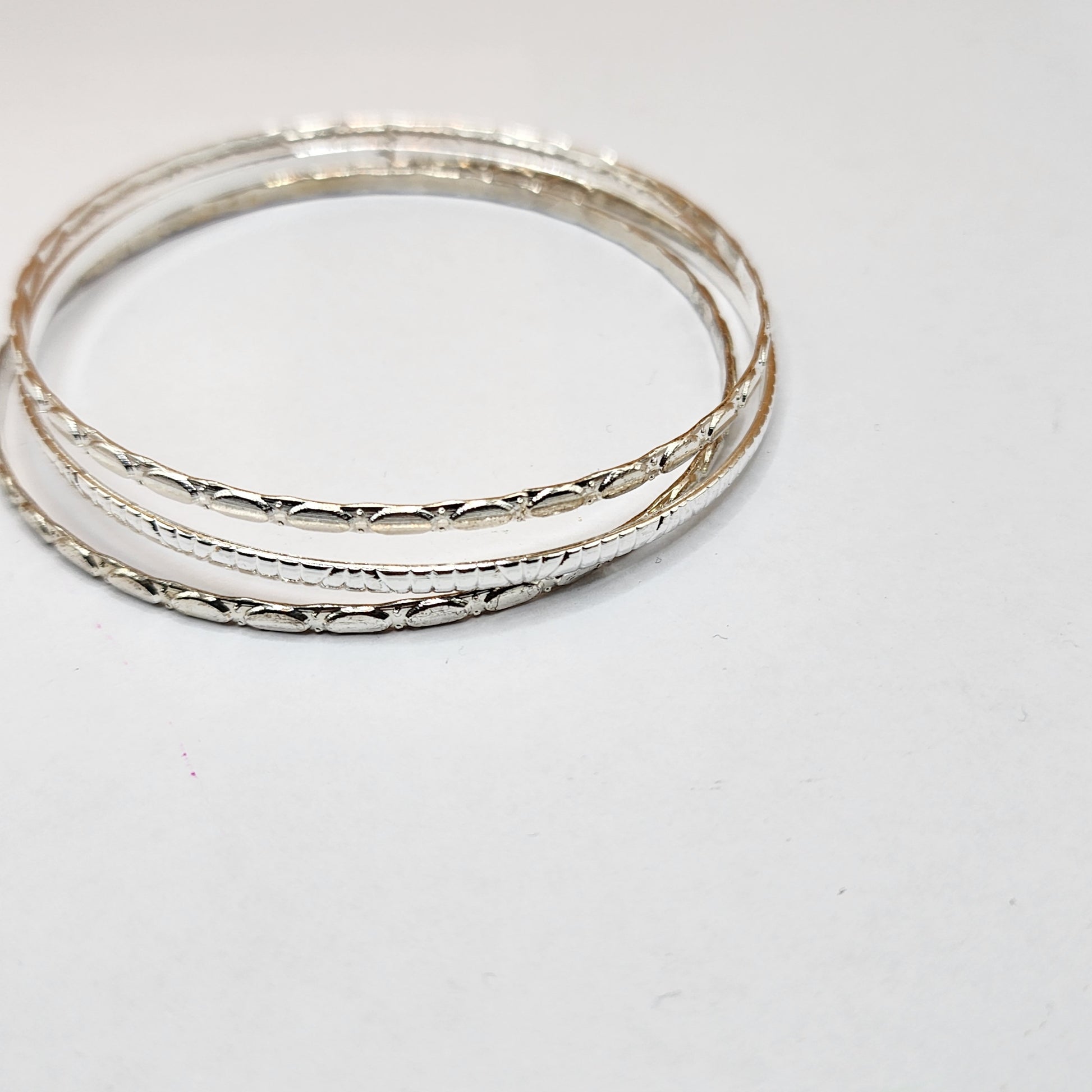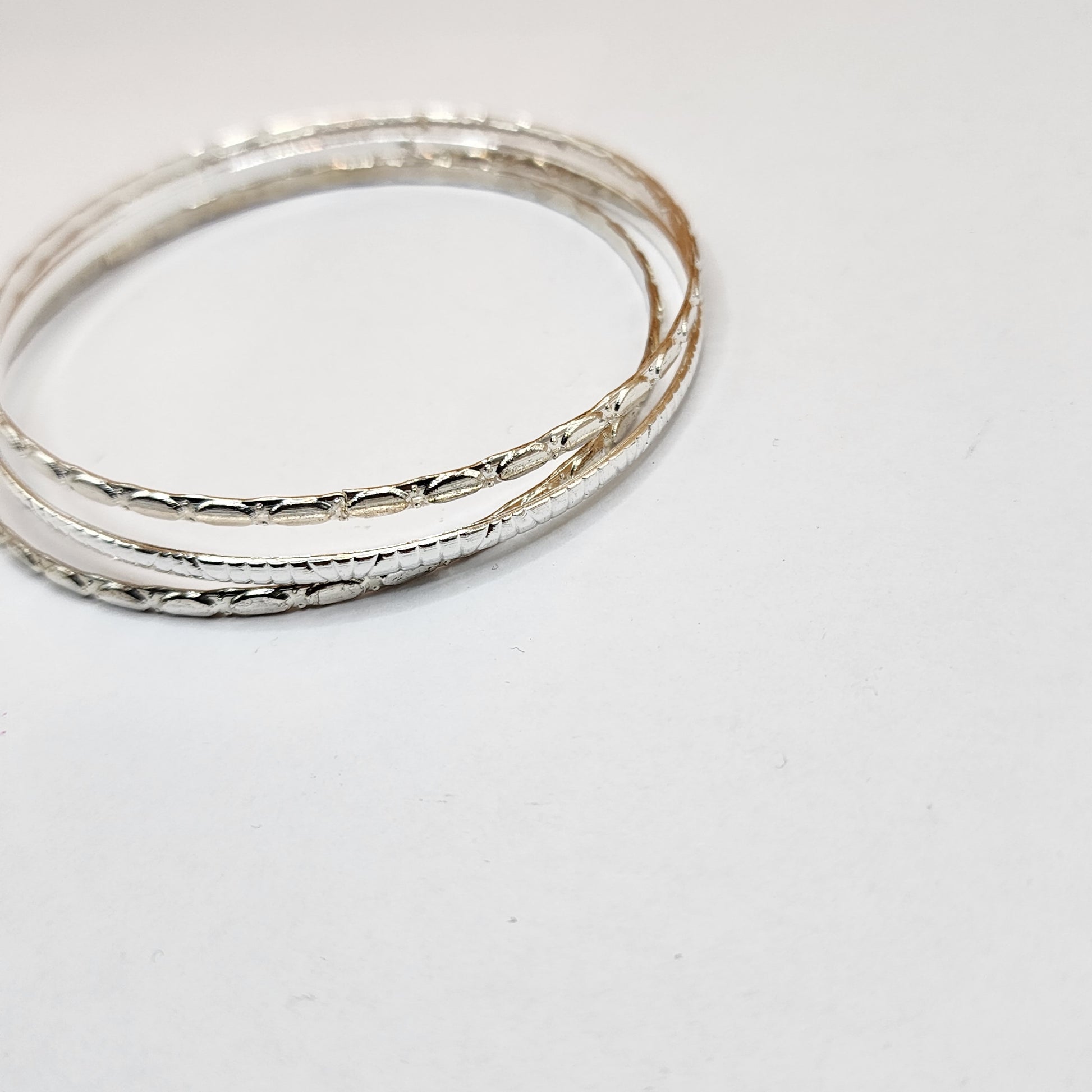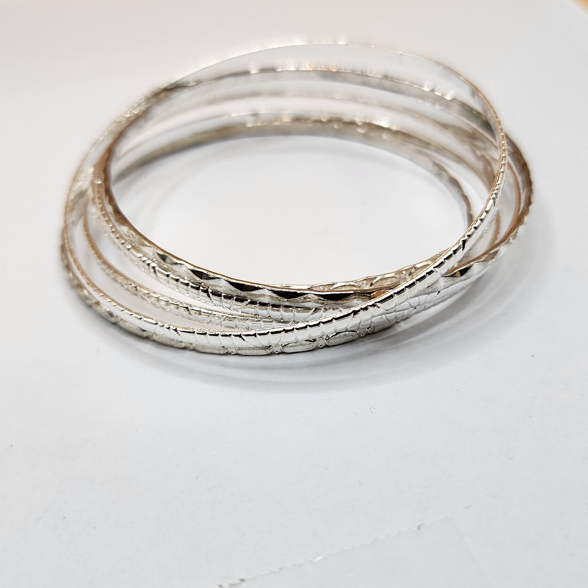 Silvertone assorted textured bangle bracelet sets.Your choice of 3 or 5, you will receive random assorted textures