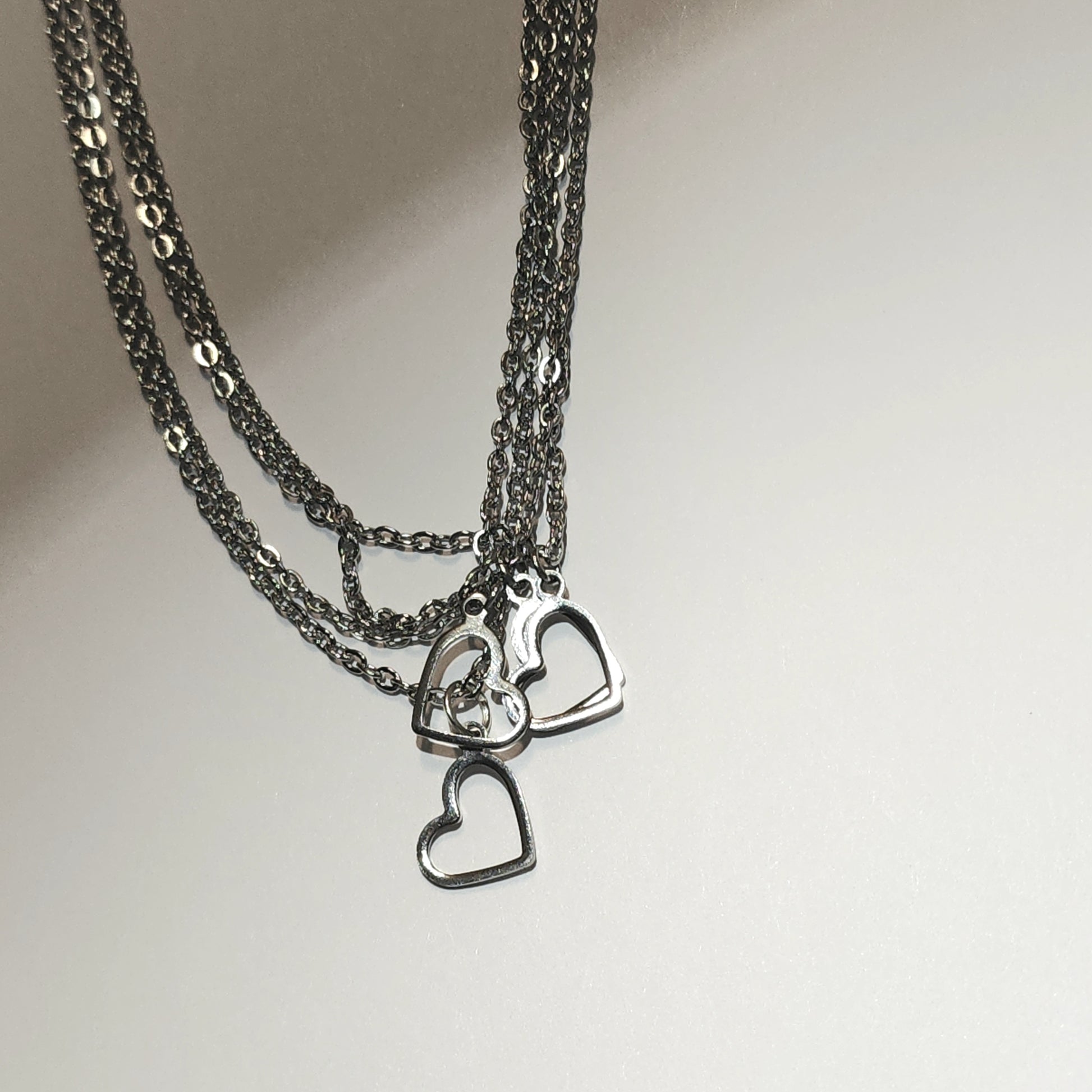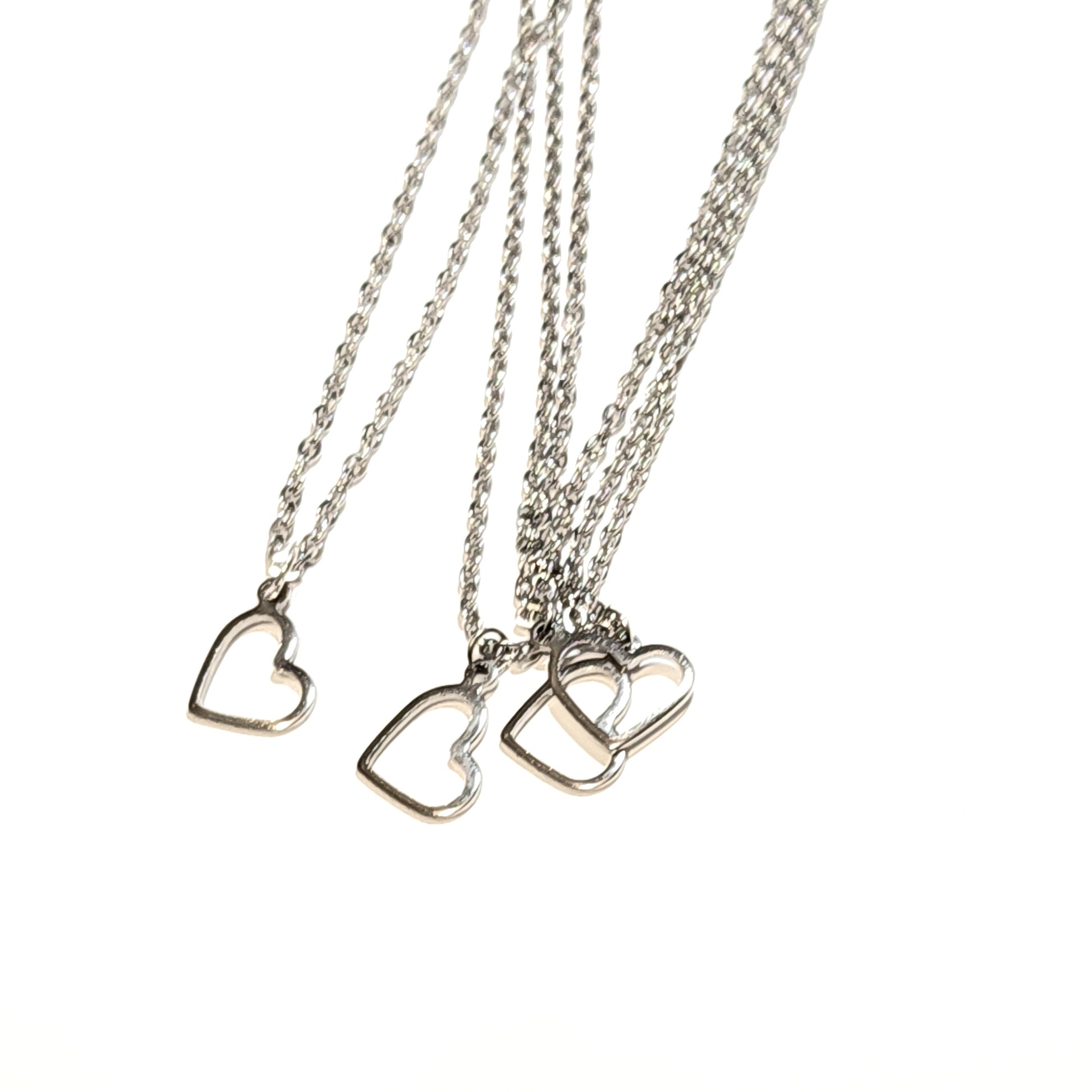 Stainless steel chain and heart pendant.