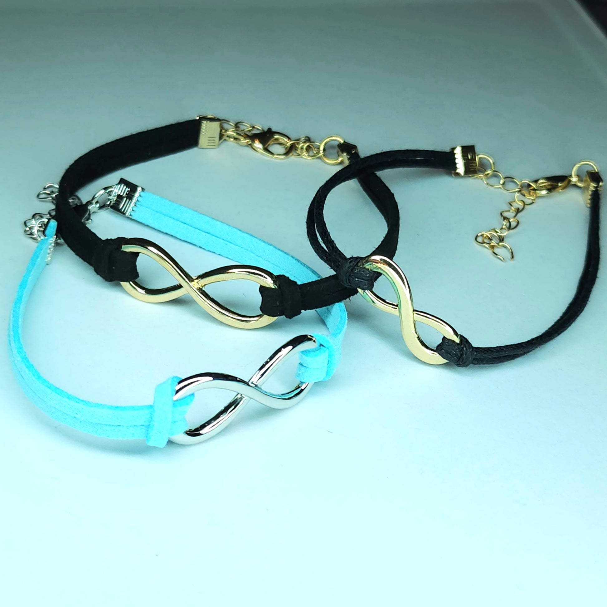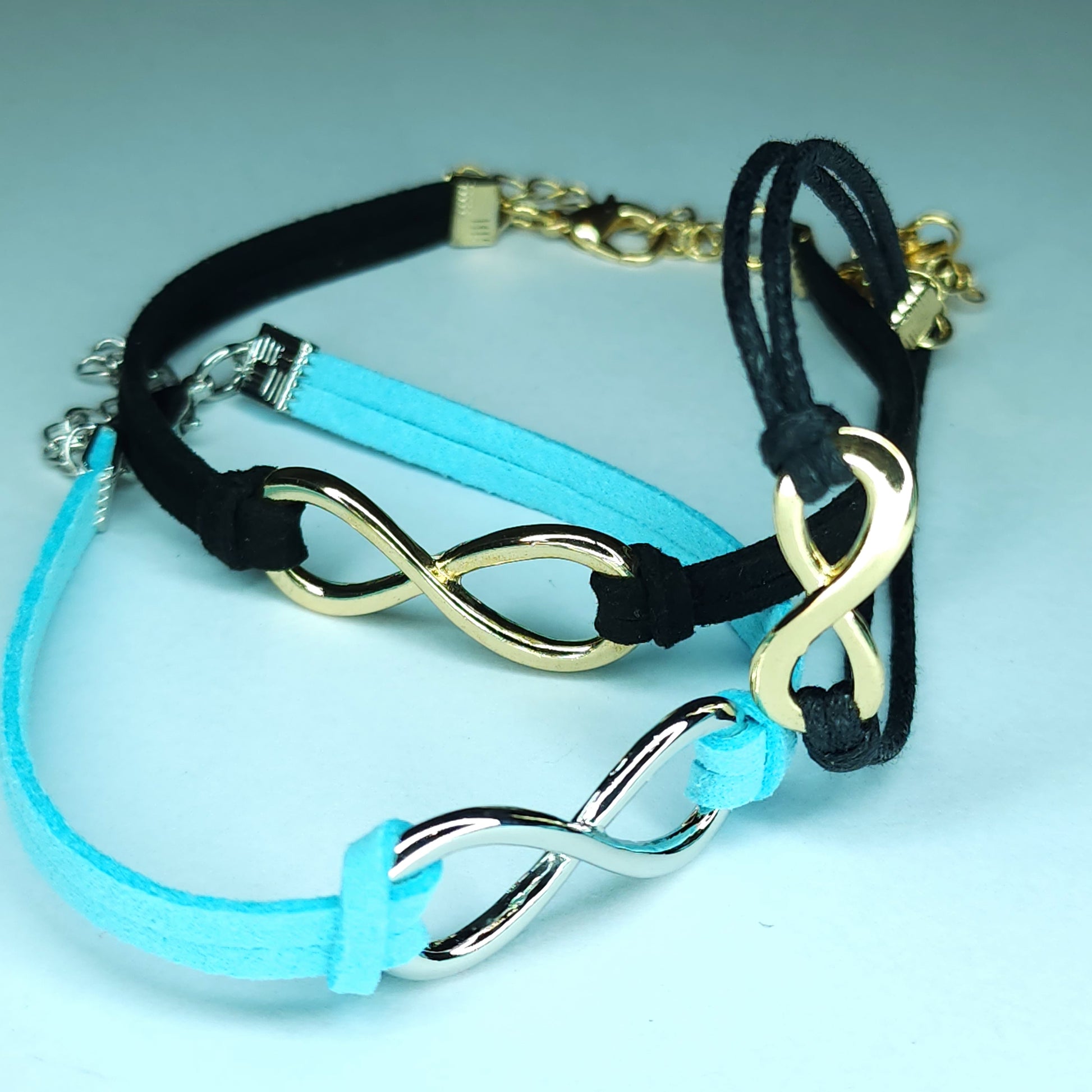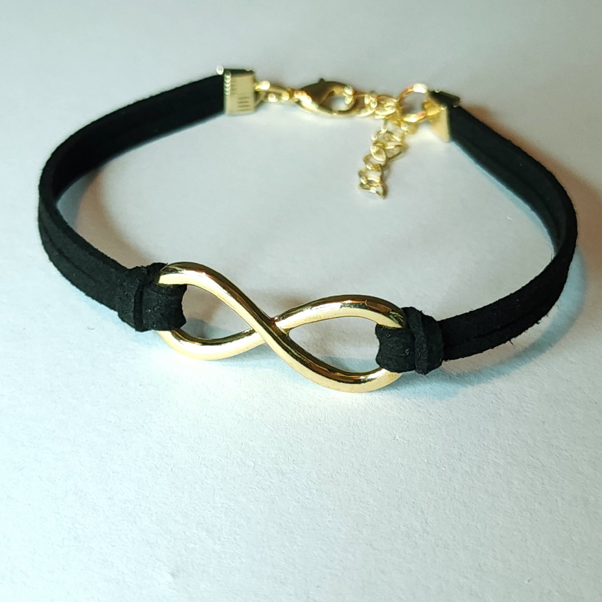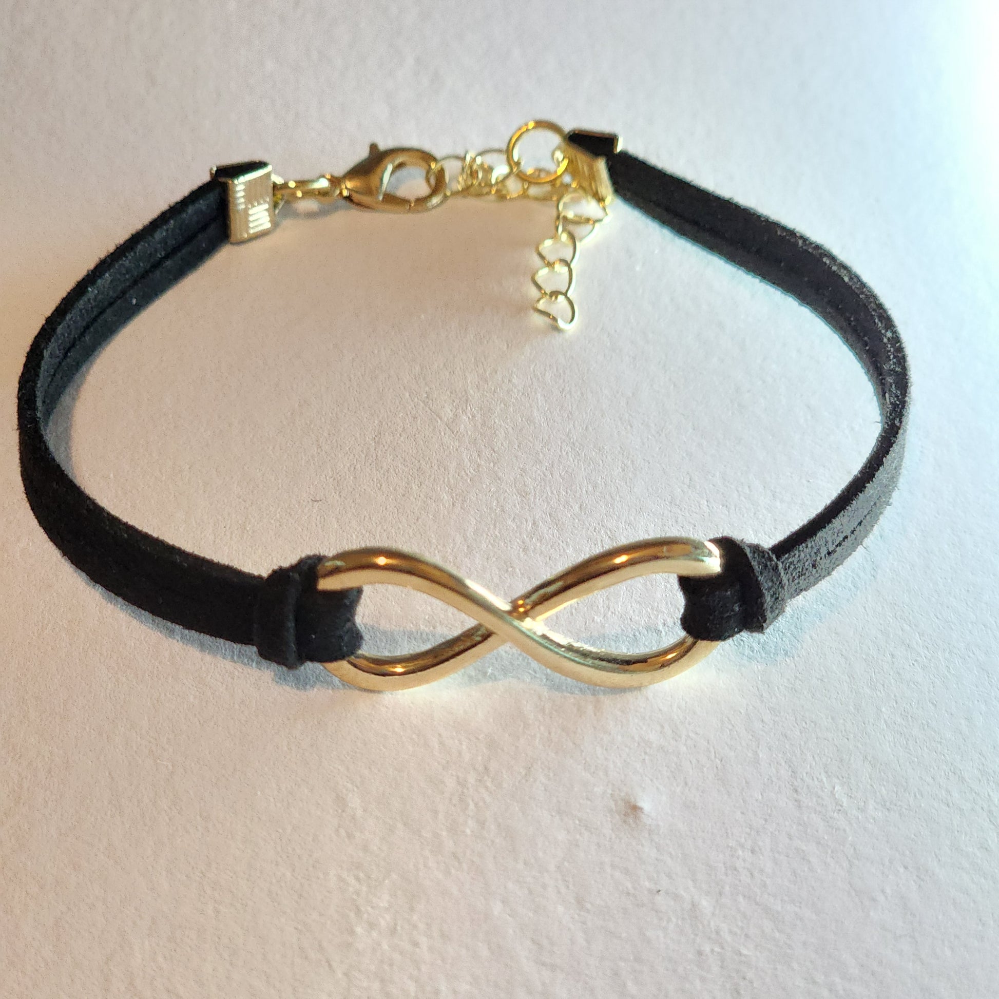 Infinity Symbol Cast Iron Leatherette Bracelet with Lobster Claw Clasp